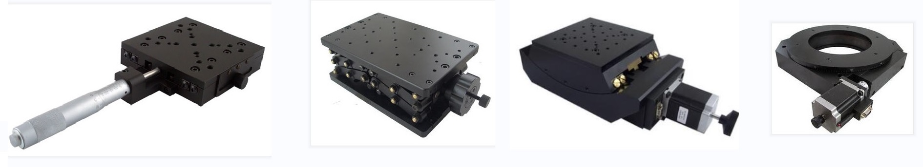 • 手動旋轉臺 手動平移臺 手動升降臺 手動傾斜臺 手動角位移臺 手動整體多軸位移臺 手動組合應用示例